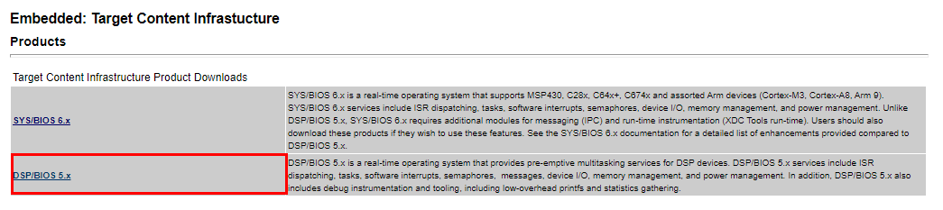 Embedded Software Product Downloads Title Description TI-RTOS The TI-RTOS Real-time Operating System makes it easier to develop applications for TI microcontrollers, microprocessors, and DSPs. TI-RTOS downloads may include a real-time multitasking kernel,